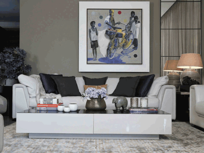 Use a lighter, warmer grey when painting the walls and layer darker saturations with a painted fireplace surround and statement furniture pieces.